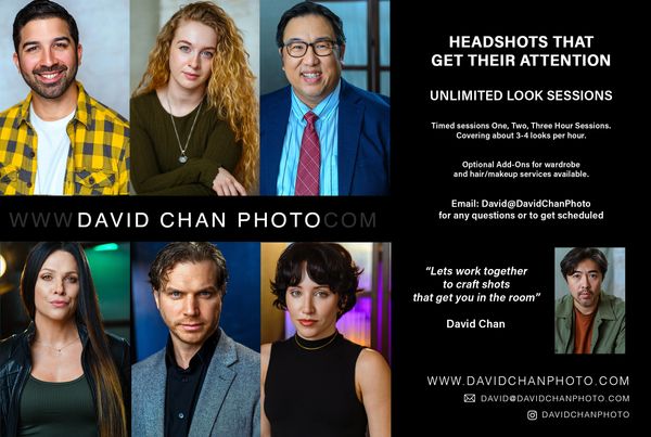 "As an actor myself, I intimately know what's being asked of us. As a photographer, I recognize the trends expected of us. As a creative artist, I take great pleasure in crafting amazing shots with you. It gives me no greater joy to hear how the headshots helped you get in a door, get signed with reps, boosted your confidence or helped in a small way to land you a dream role. Let’s get to work!"